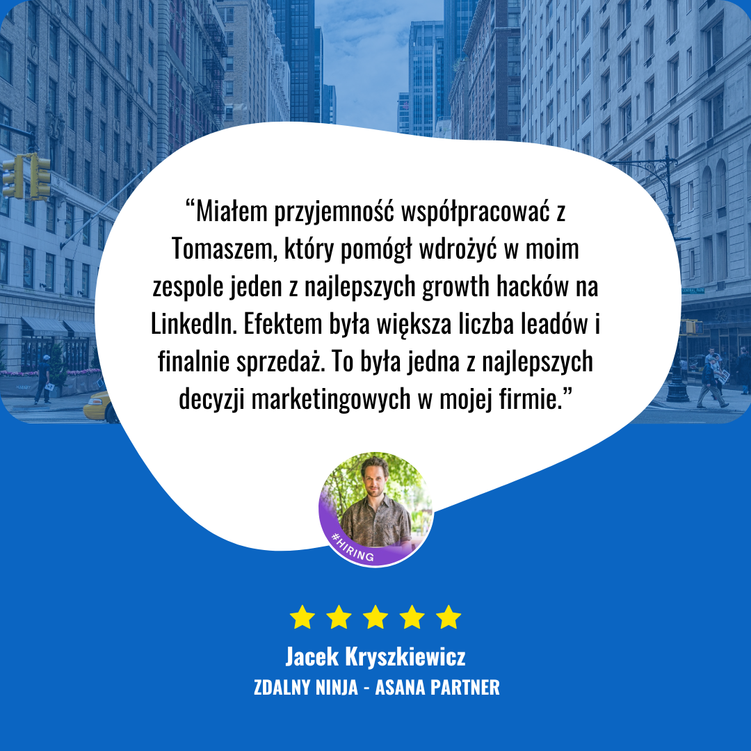 Jednak często miałem zapytania od mniejszych firm, konsultantów, freelancerów i specjalistów, chcących rozwijać swoje marki osobiste na LinkedIn. Moją jedyną ofertą były mentoringi 1:1 za kilka tysięcy złotych.